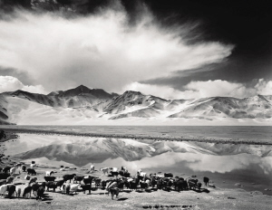 一臺古老而又沉重的相機,和由它帶來的幾分笨拙而又充滿儀式感的觀看世界的方式,正好對應了馮建國在中國西部尋夢的心境。如今,馮建國常教導學生,“你所向往的東西就純粹地去做”。或許是帕米爾高原千年冰山的呼喚,或許是塔克拉瑪干沙漠遠古駝鈴的回響,還有青藏高原朝圣的腳步、誦經(jīng)的吟唱……印證了他對西部的無盡向往和與大畫幅黑白攝影的不解之緣。