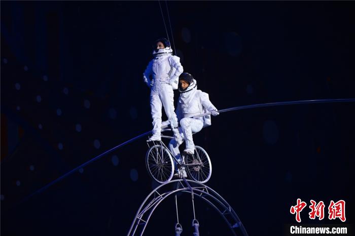 《新年奇幻夜》中,充滿強烈的科技感、時尚感,以及運用豐富多元現(xiàn)代舞臺效果的馬戲節(jié)目,為觀眾呈現(xiàn)耳目一新的視覺體驗。其中來自匈牙利的《太空漫步》是國際馬戲節(jié)金獎節(jié)目,含金量十足。在近20米的高空,“宇航員”通過超高難度的表演,展現(xiàn)絕美的技藝,創(chuàng)造出身體平衡的極限之美。