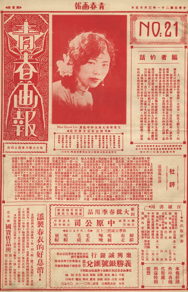 《青春畫報》為十日刊,每月5日、15日、25日出刊。自第23期起改為周刊,每周三出刊,8開道林紙印刷,共4版。該畫報營業(yè)部設(shè)在天津法租界32號路93號,由位于老西開教堂后中和里的百城書局承印。后接受社會捐款3000余元,自備印刷設(shè)備,從第22期開始實現(xiàn)自行印刷。該畫報擁有完善的通訊員網(wǎng)絡(luò),全國各名校均有其通訊員,畫報所刊文章除頭版“社評”外,其余均為通訊員來稿。該畫報存世時間不長,約于1932年底???。