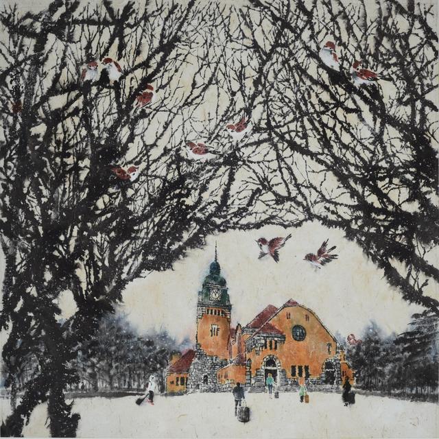 郭丙州中國(guó)畫參展作品《青島老站印象》 96cmx96cm