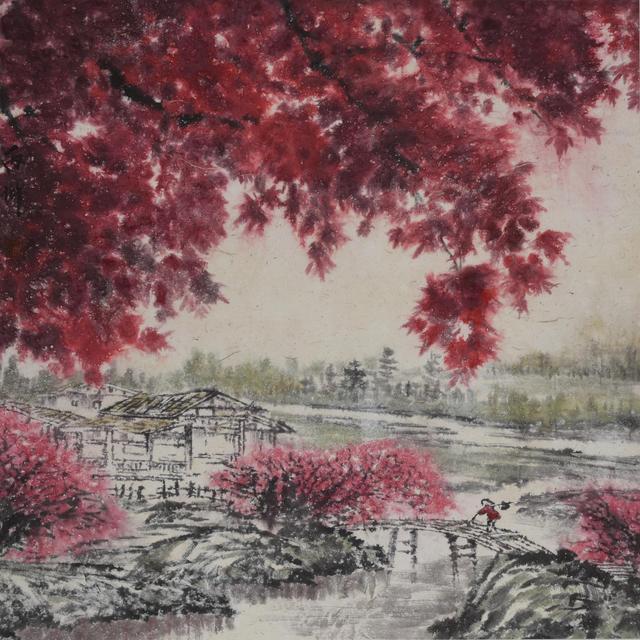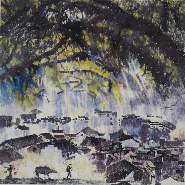 郭丙州中國(guó)畫參展作品《徽鄉(xiāng)秋雨》 96cmx96cm