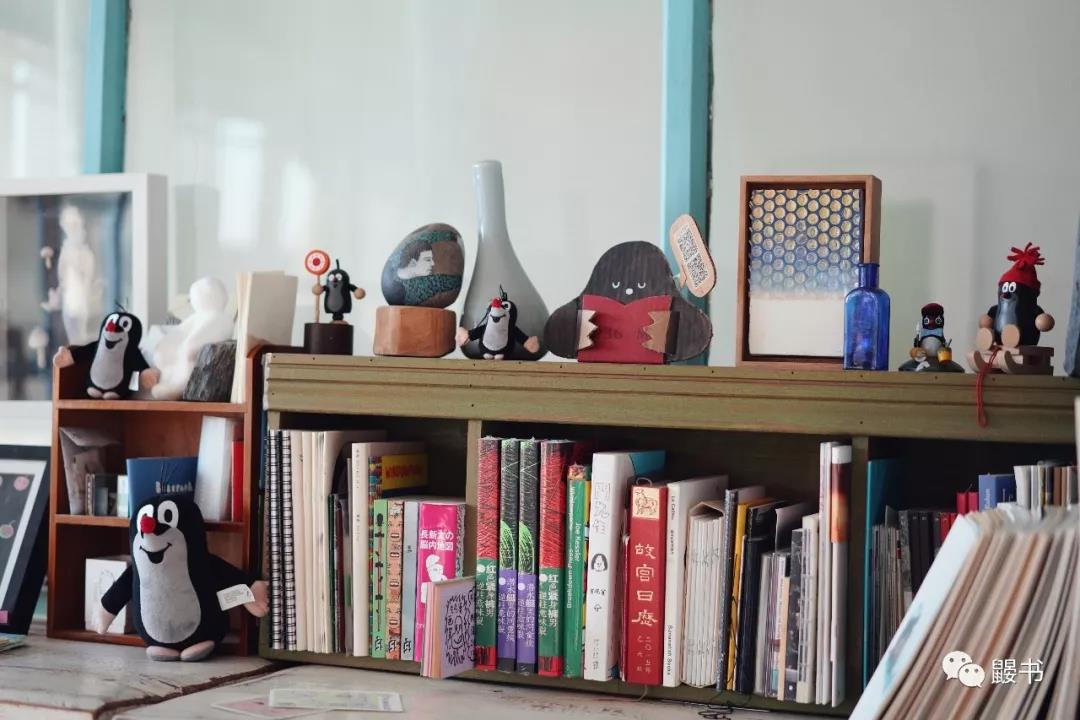 店名中有“鼴”,logo更是直接出現(xiàn)了這個憨態(tài)可掬的小動物形象,看到它,心中自然浮現(xiàn)的是鼴鼠在書籍的寶藏里不停挖掘、快樂打滾、精心收藏的情景?!褒B”在古漢語里有“藏”的意思,這十分契合鼴書的定位,收藏好書,靜待知音。書店理念通過視覺表達具象化了,這是意達的點子。Pigao說,意達總是“點子特別正”,除了確定logo這樣重要的事是水到渠成,就連選擇店址也是意達“騎著車晃晃晃”“碰上”的。想法上總是很默契的兩人并不打算刻意營造什么書店形象,她們生性低調(diào),有時候喜歡像鼴鼠一樣藏起來,默默做事,生活節(jié)奏也很慢,從不圖快圖省事,在一切飛速運轉(zhuǎn)的城市生活里是絕對的“稀有動物”。