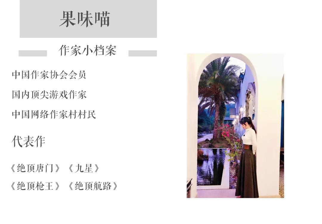 果味喵的作品《絕頂唐門》獲得兩百余萬人五星好評,完本滿意度起點(diǎn)全站前十;《九星》起點(diǎn)新書月票第一,多次沖入繁體銷量排行前十;《絕頂槍王》上架兩小時(shí)掌閱全站月票榜第一,首發(fā)網(wǎng)站點(diǎn)擊過千萬,合作方單章訂閱過十萬,改編游戲月流水過三千萬人民幣。她也是獲掌閱首屆最佳作品獎(jiǎng)、咪咕鶴鳴杯年度作品等,入選第三屆橙瓜百強(qiáng)大神、網(wǎng)絡(luò)文學(xué)二十周年人物盤點(diǎn)游戲分類十位代表作家。