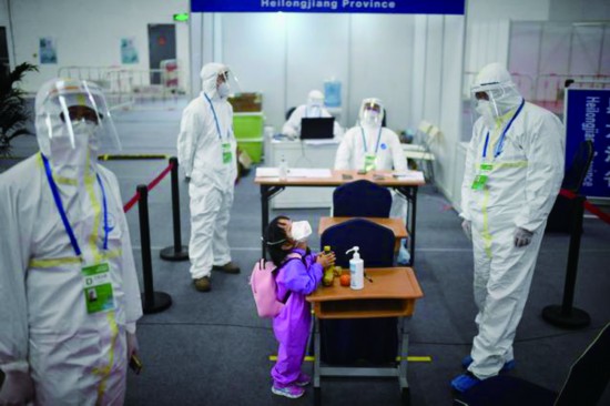 2020年3月25日,入境人員在新國展轉(zhuǎn)運集散地在等待辦理登記手續(xù)。 郝 羿 攝