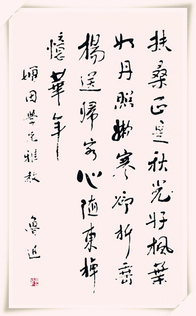 萬萬沒想到,28年后的2005年7月我訪問日本時,在島根縣松江市突然聽導(dǎo)游介紹說附近的小鎮(zhèn)鹿島是增田涉的出生地,那里的歷史民俗資料館內(nèi)設(shè)有“增田涉紀(jì)念室”。我們立即改變訪問日程,臨時增加了參觀項(xiàng)目,驅(qū)車前往歷史民俗資料館。館內(nèi)收藏有58封魯迅致增田涉的信以及魯迅題詩的真跡:“扶桑正是秋光好,楓葉如丹照嫰寒。卻折垂楊送歸客,心隨東棹憶華年?!?/p>