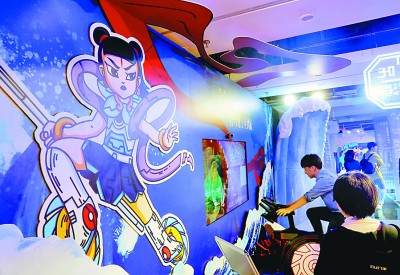 由上海美術(shù)電影制片廠、百度和豫園共同打造的“童年英雄AI幻想互動展”上,觀眾在參與互動體驗。本版照片均為新華社發(fā)