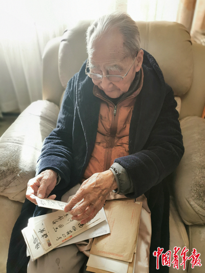許淵沖在翻看錢(qián)鐘書(shū)寫(xiě)給他的信。