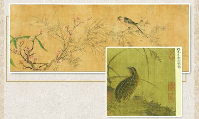 陳洪綬《春風(fēng)蛺蝶圖卷》(局部)。宋畫精品《鵪鶉圖頁》。(均上海博物館供圖)制圖:李潔