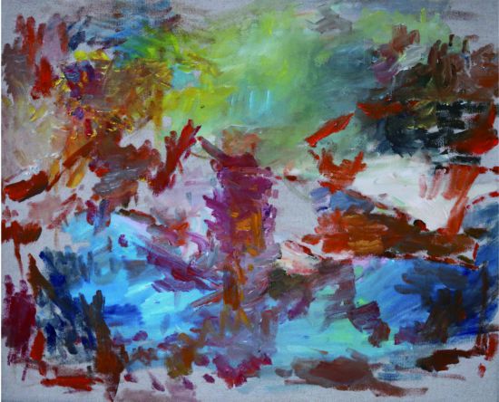 這種臨場(chǎng)感的和諧使畫家不再固執(zhí)于數(shù)十年的具象繪畫訓(xùn)練。事物的在場(chǎng),當(dāng)然包含了比一套固定技法或繪畫體系要多得多的意義。因此,現(xiàn)場(chǎng)創(chuàng)作仿佛一場(chǎng)嚴(yán)肅的儀式,旨在把已經(jīng)失去聯(lián)系的世界重新請(qǐng)回到畫布上。真正能夠呈現(xiàn)在畫布上的不過是這個(gè)世界的顯像,但通過抽象,顯像就表達(dá)為一系列感官知覺的鏈接與游戲,也就是富有自發(fā)性的色彩。畫家將這種追求稱之為創(chuàng)造過程中主觀和客觀的互動(dòng)。色彩也好,形體也罷,無不是取之于外、判攝于內(nèi)的創(chuàng)作過程,最終呈現(xiàn)為有意味的筆觸,或用畫家自己的話來說,“印象派作品的外光閃爍感”。當(dāng)然,從這個(gè)意義上說,追求筆觸的“來處”——無論這種來處是否是主客交融的產(chǎn)物——不妨仍然視為對(duì)創(chuàng)作對(duì)象的一種“摹寫”,但是,抽象意識(shí)的自覺則恰好剔除了這種“摹寫”的客觀意味。換言之,印象派執(zhí)著于外部客觀性或者說光影之“真”的追求,完全被畫家關(guān)于抽象繪畫的自我理解所取代。實(shí)際上,這種理解可以非常傳統(tǒng)地形諸于傳統(tǒng)繪畫的內(nèi)外關(guān)系,從而與西方抽象畫傳統(tǒng)的自我理解判然有別。