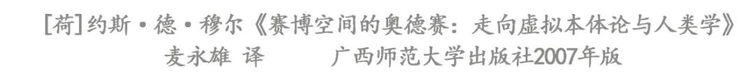 13、[荷]約斯·德·穆爾:《賽博空間的奧德賽:走向虛擬本體論與人類學(xué)》,麥永雄譯,廣西師范大學(xué)出版社2007年版,第100頁。著重號為原文所有。