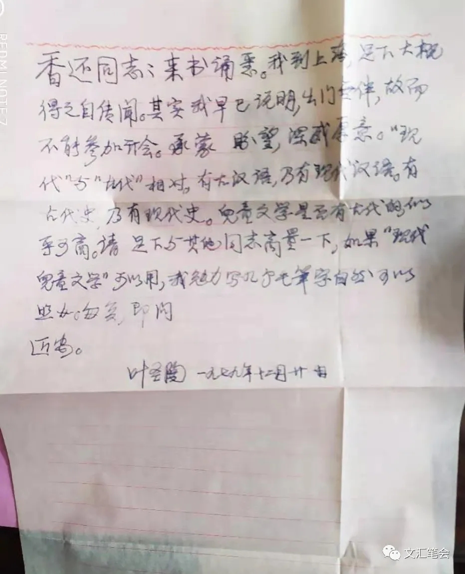 香還同志:來(lái)書(shū)誦悉。我到上海,足下大概得之自傳聞。其實(shí)我早已說(shuō)明,出門(mén)無(wú)伴,故而不能參加開(kāi)會(huì)。承蒙盼望,深感厚意。“現(xiàn)代”與“古代”相對(duì)。有古漢語(yǔ),乃有現(xiàn)代漢語(yǔ)。有古代史,乃有現(xiàn)代史。兒童文學(xué)是否有古代的,似乎可商。請(qǐng)足下與其他同志商量一下。如果“現(xiàn)代兒童文學(xué)”可以用,我勉力寫(xiě)幾個(gè)毛筆字自然可以照辦。匆復(fù),即問(wèn)