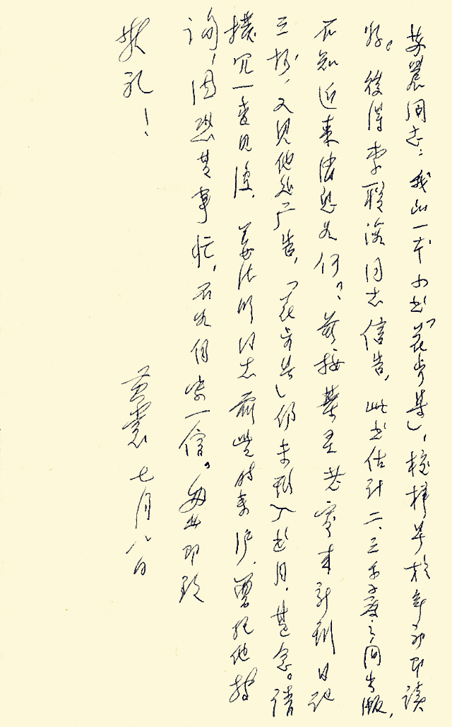 曾定夷同志來,帶來您的信,早已收到,遲復(fù)為歉。
