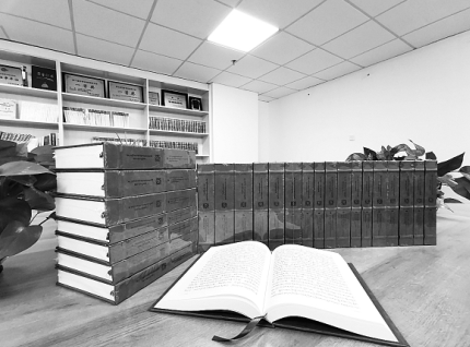黃褐色仿皮封面、16開精裝的25冊《居米龐嘉央南杰嘉措文集》(藏文)整齊地排列在書架上,足足有一米多長。在燈光的映照下,充滿了歷史的厚重感。李樹軍告訴記者,這套書以四川省德格縣宗薩印經(jīng)院雕刻印行的27函木刻本為底本,出版時(shí)將27函整合為25冊,全書依據(jù)藏文規(guī)范進(jìn)行排版,基本保存了藏文古籍文獻(xiàn)的原貌。