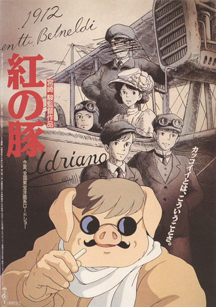 在亞得里亞海的蔚藍(lán)上空,有一抹鮮艷的紅色瀟灑地穿梭于云間,這就是波魯克駕駛的紅色水陸兩用式飛機(jī)。在宮崎駿導(dǎo)演的動(dòng)畫電影《紅豬》開頭,一群活蹦亂跳的小學(xué)生被空賊劫持,波魯克駕著有故障的飛艇仍然輕松打敗空賊曼馬由特隊(duì),贏得了不菲的賞金。僅看開篇,這似乎是一個(gè)孤膽英雄的老套故事。但這個(gè)本該有著英俊面龐的家伙身材發(fā)福走形,竟然還長(zhǎng)了一張胖胖的豬臉,幾乎類同千尋的爸媽偷吃食物后變成豬的樣子。