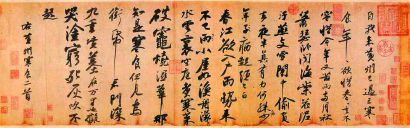 傳言倉頡造字,從甲骨文、篆書、隸書到楷書、行草,并未規(guī)定橫與豎必須模仿哪一位,撇與捺又必須遵循哪一位。不同的書寫工具無從統(tǒng)一。文字的歷史顯明,追求書寫的速度是文字演變的一個首要動力。然而,為什么這幾個字沉郁頓挫,那幾個字高古淡泊?為什么這種風(fēng)格有金石味,那種風(fēng)格豪放痛快?為什么顏真卿是剛正端莊的象征而懷素的大草被形容為浪漫主義的癲狂?書寫速度的追求突然神奇地向美學(xué)一躍,書法誕生了。文字符號嚴格規(guī)定了一筆一劃的位置和穩(wěn)固的結(jié)構(gòu)之后,書法再度打開一個特殊的美學(xué)空間。一首唐詩一首宋詞,規(guī)范的文字符號只有一種寫法,可是,筆墨紙張的加入重新讓這種寫法千變?nèi)f化。這個美學(xué)空間的意義不是另行頒布一套森嚴的書寫規(guī)范,而是另行頒布一副起伏的心情。