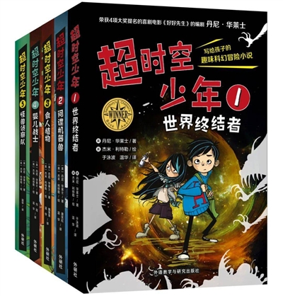 近年來,國(guó)內(nèi)掀起科幻風(fēng)潮,兒童科幻小說自是不可忽視的一支勁旅。無論是作家、作品抑或是相關(guān)獎(jiǎng)項(xiàng),均有異軍突起的態(tài)勢(shì)。然而就其類型、風(fēng)格、想象力而言,仍有很大提升空間。異邦新聲或?yàn)槲覀儽匍_別樣蹊徑,提供不一樣的閱讀體驗(yàn)。外研社2020年引進(jìn)的英國(guó)暢銷書作家丹尼·華萊士的科幻冒險(xiǎn)小說《超時(shí)空少年》(共5冊(cè),分別為《世界終結(jié)者》《間諜機(jī)器獸》《食人植物》《嬰兒戰(zhàn)士》《怪獸偵察隊(duì)》)無疑是一部別開生面的作品。
