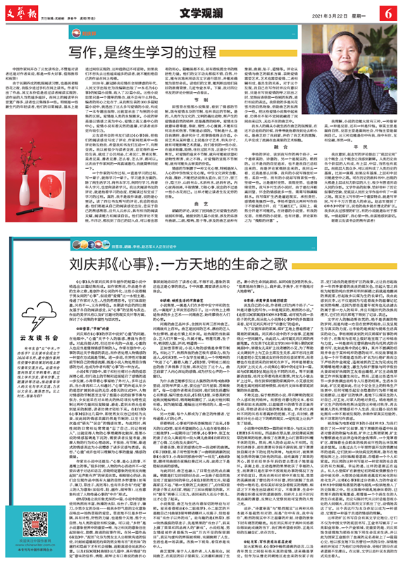 本文為劉慶邦對(duì)云友讀書會(huì)《劉慶邦<心事>:一方天地的生命之歌》一文的作家回復(fù),發(fā)于中國作家網(wǎng)與《文藝報(bào)》合辦“文學(xué)觀瀾”專刊2021年3月22日第6版