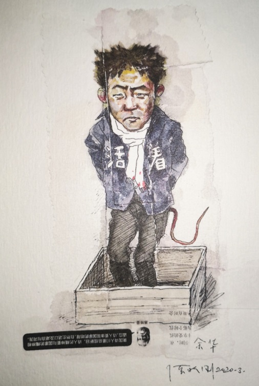 金赫楠注意到,《文城》隨書夾贈(zèng)的書簽上印著一幅余華畫像,畫中余華的上衣正面赫然印著兩個(gè)醒目的大字“活著”——這是在暗示“活著”已經(jīng)同小說家余華徹底地互為表里? (書簽作品為藝術(shù)家張曉剛為余華創(chuàng)作的生肖鼠漫畫)