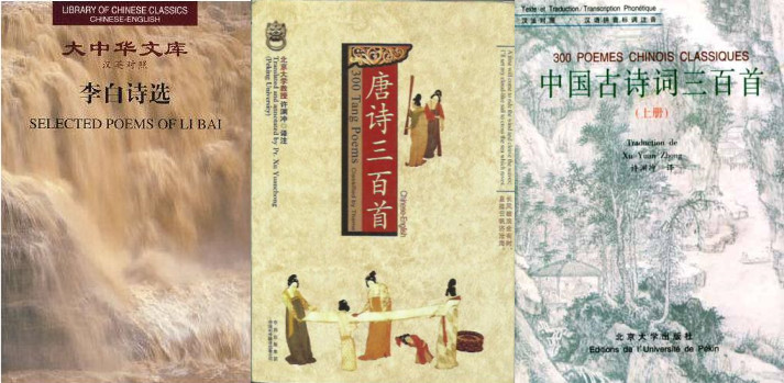 許淵沖部分翻譯作品:《李白詩(shī)選》《唐詩(shī)三百首》(中譯英)、《中國(guó)古詩(shī)詞三百首》(中譯法)