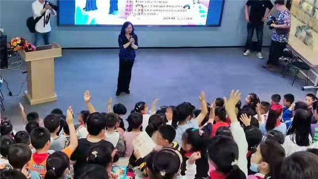 在蒼南書城,楊紅櫻與小讀者們分享了《淘氣包馬小跳》系列圖書的創(chuàng)作故事。楊紅櫻說,馬小跳的生活原型是她當(dāng)老師時(shí)遇到的學(xué)生,她見證了馬小跳從頑皮男孩逐漸成長(zhǎng)為優(yōu)秀學(xué)生的過程,希望將這段經(jīng)歷分享給更多小朋友們。她鼓勵(lì)小讀者要從馬小跳身上汲取成長(zhǎng)的動(dòng)力,即便覺得當(dāng)下的自己不夠完美,也要和馬小跳一樣積極進(jìn)取,努力成為最好的自己。此外,她還為大家講述了作為兒童作家的豐富經(jīng)歷,并與小讀者進(jìn)行了親密互動(dòng)。