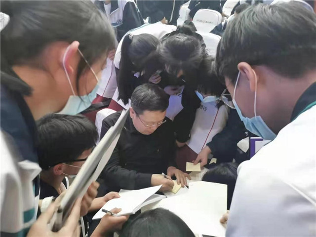 在龍灣中學(xué),管平潮做了題為“閱讀讓心靈群星閃耀”的分享,用輕松幽默的方式向師生們介紹了他多年的閱讀和創(chuàng)作體驗(yàn)。管平潮認(rèn)為,興趣是最好的老師,好的閱讀習(xí)慣使人受益良多:不僅能提升學(xué)習(xí)工作效率和綜合素質(zhì),更能開闊視野、滋養(yǎng)心靈。他勸告青年學(xué)生,閱讀不是為了炫耀,而是為了讓讀過的書化為生命的養(yǎng)料,讓自己成為比昨天更好的人。