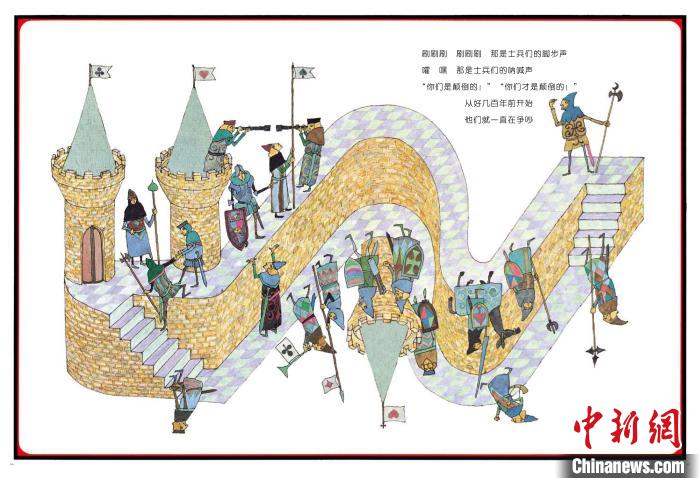 非凡的想象是安野光雅作品最鮮明的特征。他的處女作《奇妙國》充滿了各種各樣天馬行空的想象,他還大玩視覺游戲,運(yùn)用矛盾圖形、透視、空間錯位等手法,建構(gòu)出一個現(xiàn)實(shí)中不可能存在,但又合乎空間邏輯的奇妙世界,大膽的想象與周密的設(shè)計(jì)令人嘆為觀止,這樣的創(chuàng)作方式在同時(shí)期的兒童繪本中并不常見。此外,他還極為先鋒地將數(shù)理知識融入繪本,做到了藝術(shù)性和科學(xué)性的完美結(jié)合?!额嵉箛纷鳛椤镀婷顕返逆⒚闷蛯⒌乩碇R融入了故事敘述之中,運(yùn)用鏡像般的圖畫語言,向讀者展示了一個光怪陸離的顛倒世界。幽默的故事背后,還暗含了“相對”的哲理。