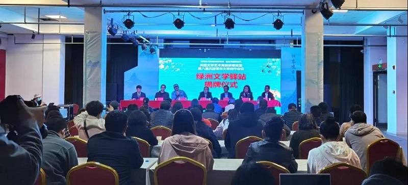 揭牌儀式上,綠洲雜志社宣布授予烏魯木齊遇見(jiàn)文化產(chǎn)業(yè)園董事長(zhǎng)何靜先生為《綠洲》文學(xué)驛站站長(zhǎng),《綠洲》文學(xué)雜志文學(xué)顧問(wèn)、原新疆作協(xié)常務(wù)副主席趙光鳴向何靜先生頒發(fā)站長(zhǎng)聘書。郁笛與何靜先生共同為《綠洲》文學(xué)驛站揭牌。兵團(tuán)文學(xué)藝術(shù)高級(jí)研修班的學(xué)員等70余人參加了當(dāng)天的揭牌儀式。