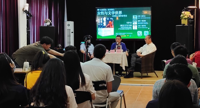 分享會現(xiàn)場,謝友順、胡文學(xué)與賈夢瑋談女性與文學(xué)世界