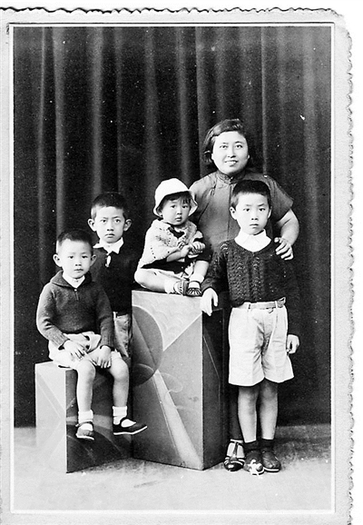 1938年張一貫與孩子們在北平東安市場照相館。前排孩子右起依次為錢拙、錢易、錢行、錢遜。