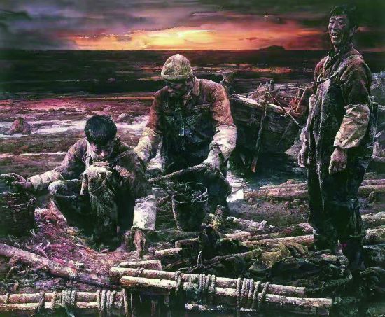 其次表現(xiàn)在格局見大,今天的水彩從“習(xí)作”向“創(chuàng)作”、“微型”向“巨型”、“抒情”向“敘事”轉(zhuǎn)換的趨勢日益明顯,大有叫板“油老大”的勢頭。當(dāng)今國內(nèi)水彩畫中出現(xiàn)了許多頗具史詩感的作品,例如由王紹波創(chuàng)作的水彩畫《漁歌》曾獲得第十屆全國美展金獎,畫家用水彩的方式表達(dá)了一種宏大的、雄健的情緒,改變了水彩畫是“小畫種”的傳統(tǒng)認(rèn)知。格局見大又著重表現(xiàn)在以下四個方面:第一,題材突破。在主題性創(chuàng)作方面取得重大突破,大量表現(xiàn)重大歷史題材和現(xiàn)實(shí)生活,極大地拓展了水彩藝術(shù)的題材領(lǐng)域和表現(xiàn)范圍;第二,創(chuàng)作主導(dǎo)。以謹(jǐn)嚴(yán)的構(gòu)思整飭筆下形象,將技巧、手法、語言形式或風(fēng)格樣式導(dǎo)向特定思想主題表現(xiàn)的創(chuàng)作性,日益成為影響水彩藝術(shù)走向的主導(dǎo)方面,改變了以對景寫生創(chuàng)作的傳統(tǒng)格局。第三,塑造力強(qiáng)化。比之于油畫,原本非水彩之長的塑造力,即透入神情質(zhì)感、絲絲入扣的塑造性刻畫,包括對人物、景物、器物形象深入細(xì)微的刻畫,以及大場景的恢宏性駕馭,在水彩畫創(chuàng)作上有了顯著加強(qiáng)。例如第九屆全國美展金獎水彩作品由陳海寧創(chuàng)作的《和諧的記憶》,在塑造性刻畫方面功力見長,暗含了水彩創(chuàng)作的整體發(fā)展趨勢。第四,風(fēng)格形式多樣化。幾乎整個藝術(shù)領(lǐng)域的所有風(fēng)格樣式都有水彩介質(zhì)的呈現(xiàn),例如寫實(shí)、寫意、抽象或裝飾畫風(fēng),水彩畫風(fēng)格面貌比較豐富。