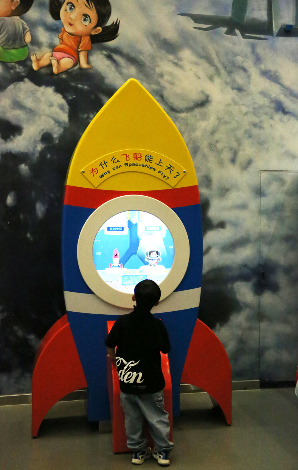 2021年5月19日,小朋友在中國(guó)科學(xué)技術(shù)館體驗(yàn)科普設(shè)備,了解飛船上天過(guò)程。新華網(wǎng)發(fā)(劉廣生 攝于北京)