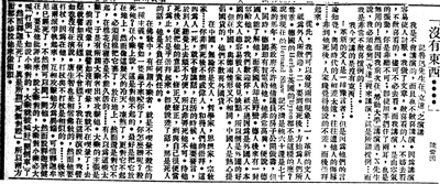 “這次演講,尚記得題目是‘偉人的化石’,大意是說(shuō)偉人在生前處處高享是受人嫉視,合不上道兒,及其既死,則又無(wú)點(diǎn)不受人歡迎,含意深刻而沉痛!”