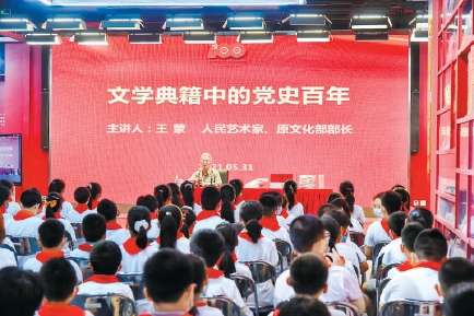 為進一步向少年兒童講好黨史故事,5月31日,首都圖書館與北京市圖書館協(xié)會聯(lián)合相關單位推出“童書經(jīng)典中的黨史——慶祝中國共產(chǎn)黨成立100周年主題童書展”。開幕當天,作家王蒙以《文學典籍中的黨史百年》為題,為現(xiàn)場的100多名小學生及廣大市民講了一堂文學氣息濃厚的黨史學習公開課。