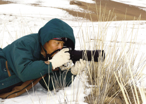 生態(tài)攝影家、環(huán)保衛(wèi)士葛玉修在野外拍攝。 孔祥瑞攝