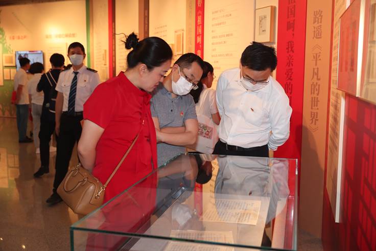 開幕式后,鐵凝、錢小芊和參加開幕式的所有人員步入展廳參觀展覽。展覽的第一部分是“1921年·時代的聲音”,魯迅的《故鄉(xiāng)》、郭沫若的《女神》、郁達夫的《沉淪》等作品展現(xiàn)了五四那一代作家對時代與現(xiàn)實的敏銳把握。隨后,“左聯(lián)五烈士”的散文和詩作、方志敏的《可愛的中國》、茅盾的《子夜》、巴金的《家》、艾青的《我愛這土地》、老舍的《四世同堂》等作品的相關(guān)手稿、書籍依次映入眼簾,其中蘊含著青春的熱血與激情,以及作家們對祖國和人民的深厚情感?!饵S河大合唱》《小二黑結(jié)婚》《太陽照在桑干河上》等相關(guān)展品則勾連起解放區(qū)文學(xué)的昂揚基調(diào)。1949年新中國成立,文學(xué)的氣象也隨之翻新,展覽通過胡風(fēng)、臧克家、何其芳等人的詩作片段,以及關(guān)于第一次文代會的照片等展品展現(xiàn)新中國文學(xué)的新起點。關(guān)于上世紀(jì)五六十年代的文學(xué),展覽展出了《紅巖》《紅日》《紅旗譜》《創(chuàng)業(yè)史》《青春之歌》《保衛(wèi)延安》《乘風(fēng)破浪》等長篇小說和魏巍的散文《誰是最可愛的人》、賀敬之的詩歌《雷鋒之歌》等作品,一本本珍貴的初版書和一頁頁帶著靈韻的作家手稿彰顯著紅色經(jīng)典的魅力。展覽以徐遲、周克芹、路遙和王蒙、蔣子龍、張潔、舒婷等作家的作品為例,展現(xiàn)了新時期文學(xué)與時代同頻共振的特質(zhì)。“新時代 新征程”板塊則以視頻的形式聚焦“百年路新征程詩歌創(chuàng)作工程”的成果,以及作家、詩人們對于新時代文學(xué)的展望。