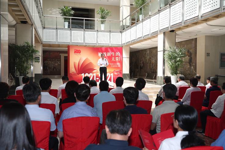 “迎著新生的太陽——慶祝中國共產(chǎn)黨成立100周年紅色經(jīng)典大展”開幕式現(xiàn)場