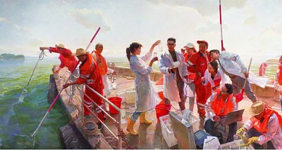 黨的十八大以來,美術(shù)家們在習(xí)近平新時代中國特色社會主義思想指引下,更加自覺地為人民創(chuàng)作、為時代放歌,描繪時代風(fēng)云,弘揚(yáng)時代精神,推動美術(shù)事業(yè)不斷從高原邁向新的高峰。商亞東的油畫《最美太湖水》聚焦科技治理水污染,將可持續(xù)發(fā)展的主題生動地落到畫布上,呈現(xiàn)出黨和國家大力科學(xué)治水、科學(xué)管水的卓越成效,再現(xiàn)了太湖流域湖水澄清、生態(tài)優(yōu)美的旖旎風(fēng)光。陳樹中的油畫《俱歡顏·安居》將創(chuàng)作視角專注在國家出臺的惠民政策上,即加大公租房發(fā)展力度,解決城市中低收入者、外來務(wù)工人員及畢業(yè)大學(xué)生住房難的問題?!皩τ诙际谢M(jìn)程迅猛發(fā)展的中國來說,這是一件大事?!标悩渲懈嬖V記者,面對新的家園,人們笑逐顏開的樣子,給了他很多觸動和靈感。在創(chuàng)作時,畫家還將自己的形象融入畫面,與百姓們一同感受生活的喜悅滋味。