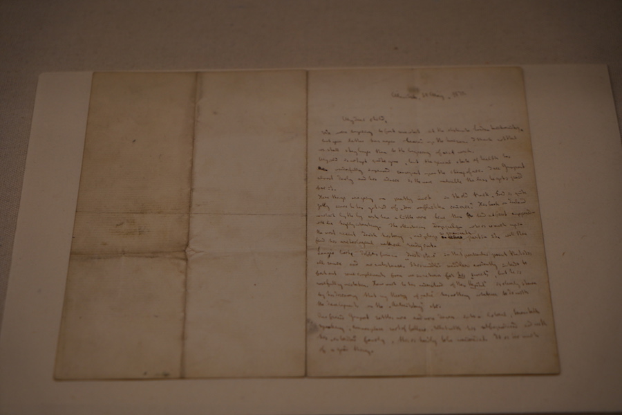 展覽中馬克思的一件《致燕妮》開始,該信是馬克思與小女兒艾琳娜在曼徹斯特恩格斯家中做客時(shí)寫給女兒燕妮的信。信中,馬克思談到了恩格斯當(dāng)時(shí)正在撰寫的著作《愛爾蘭史》和弗·阿·朗格的工人問題。