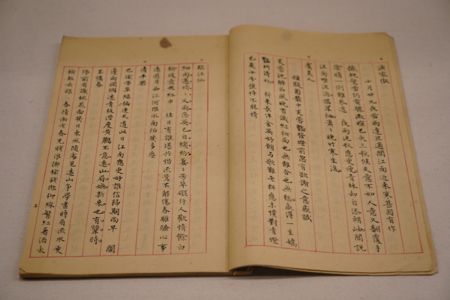 以書法而聞名的沈尹默出現(xiàn)在很多現(xiàn)當(dāng)代名人手跡中則顯得格外突出了。他在筆法、筆勢(shì)、筆意等書學(xué)理論上同樣有精深的造詣,寫出了不少書論著作,沈尹默的楷書汲取了諸體的精華,形成了自己書法的一派風(fēng)格:結(jié)體方方正正,結(jié)構(gòu)非常嚴(yán)謹(jǐn),取文雅清趣,端正之間相當(dāng)悅目?,F(xiàn)場(chǎng)展出一冊(cè)沈尹默的《念遠(yuǎn)詞》。