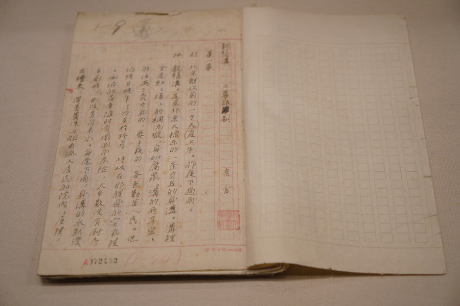 現(xiàn)代文學(xué)家們的手稿也“現(xiàn)身”本次展覽中,老舍以大量相關(guān)文史資料及實(shí)地調(diào)查為基礎(chǔ),于1950年創(chuàng)作了話劇《龍須溝》,描寫北京龍須溝居民解放前后生活的變化。