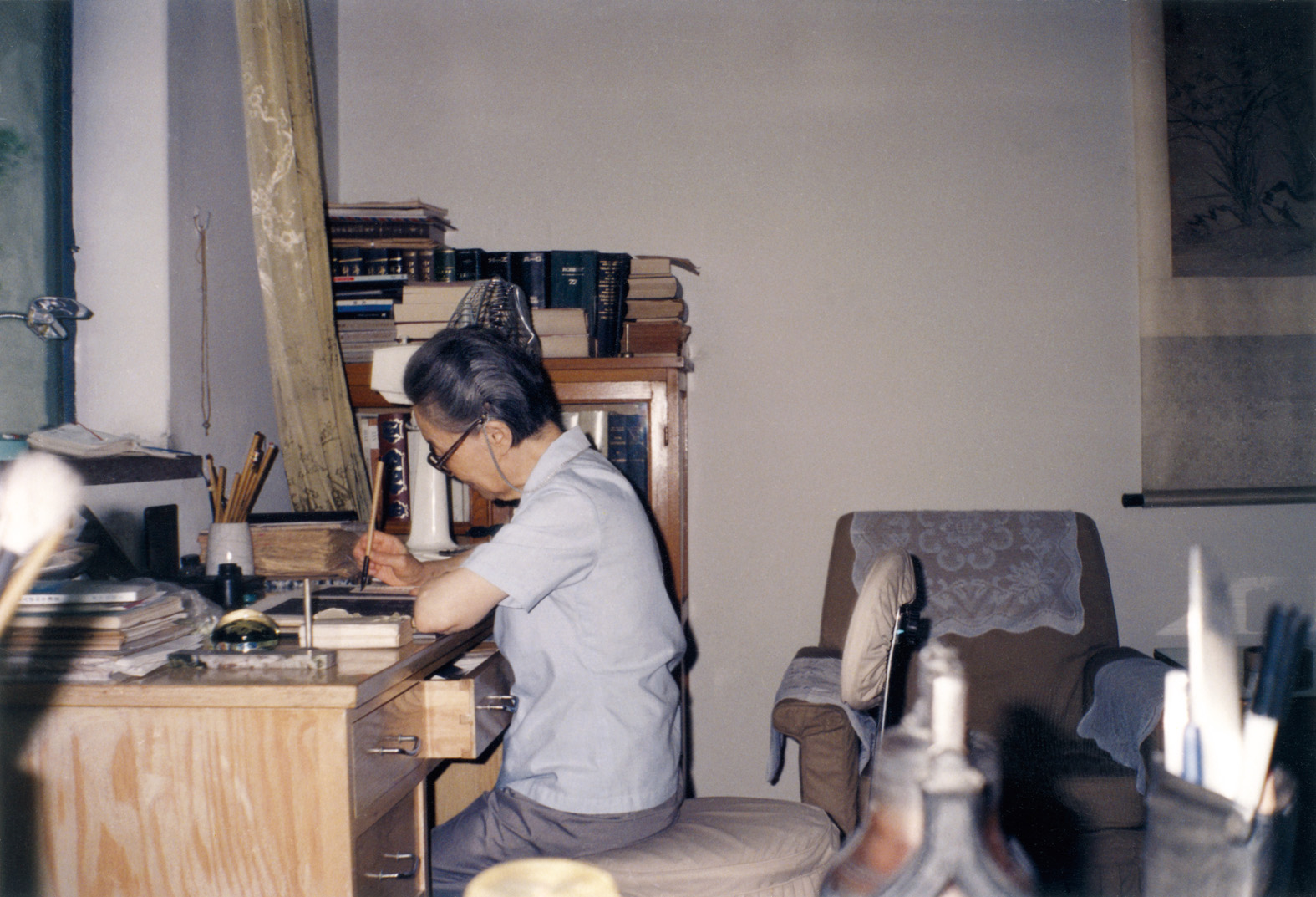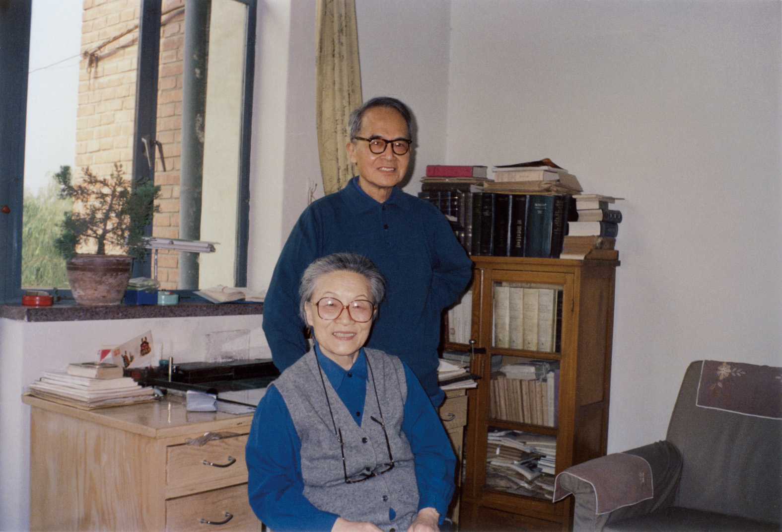 錢(qián)鍾書(shū)先生和楊絳先生在楊先生“唐詩(shī)日課”的習(xí)字桌前合影