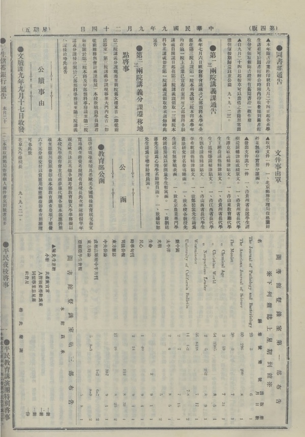 1920年9月24日《北京大學(xué)日刊》第四版