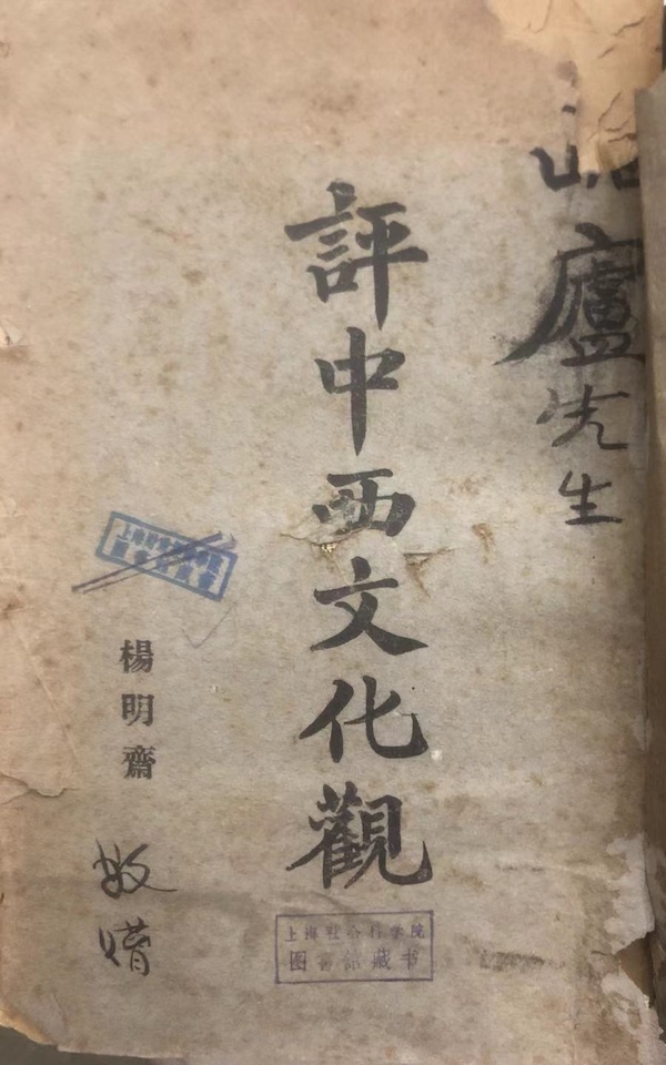 楊明齋簽贈(zèng)王云五的《評(píng)中西文化觀》(上海社科院圖書館藏)
