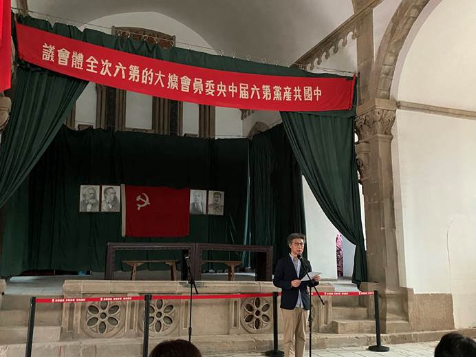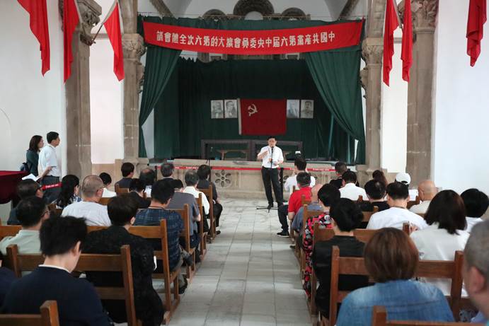 “史詩(shī)的圖像建構(gòu)·黨史百年歷史畫創(chuàng)作與研究學(xué)術(shù)研討會(huì)”在延安魯藝禮堂開幕,中國(guó)美協(xié)分黨組書記、駐會(huì)副主席徐里致辭。