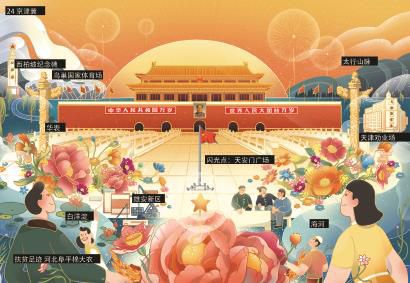 鋪開“一個都不能少——長卷尋寶”插畫長卷,一股藝術(shù)創(chuàng)新之風(fēng)撲面而來。長卷的形制取法于《清明上河圖》等古代畫卷漸次呈現(xiàn)的方式,插畫的筆觸則采用當(dāng)下國際時政漫插畫界流行的技法,結(jié)合傳統(tǒng)水墨畫散點透視與現(xiàn)代美術(shù)3D立體視角,創(chuàng)新呈現(xiàn)出“傳統(tǒng)+現(xiàn)代”的復(fù)合藝術(shù)表達形式。“故事蘊藏在鮮艷的色彩形象中,知識包含在線條與色塊的組合之內(nèi)?!敝袊鴤髅酱髮W(xué)教授李智認為,長卷承載著中國美學(xué)和中國氣質(zhì),讓成長在中國傳統(tǒng)文化復(fù)興進程中的Z世代有了與生俱來的親切感?!敖h百年、脫貧攻堅等中國正在經(jīng)歷的歷史事件,通過插畫長卷的形態(tài)得到展示,借助動態(tài)圖形的視覺傳播優(yōu)勢,使宏大主題如春風(fēng)化雨般浸潤了年輕受眾的心?!?/p>