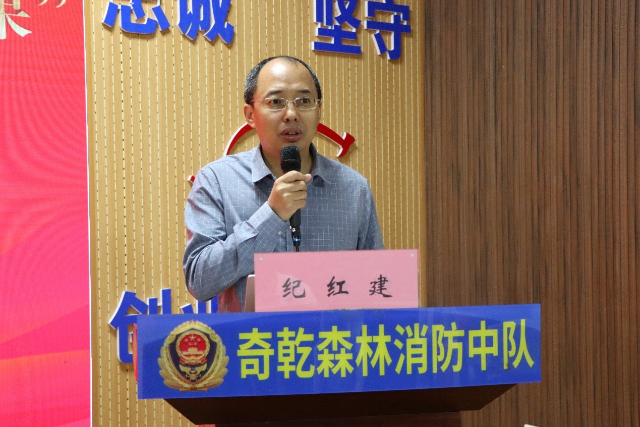 在公開課上,紀(jì)紅建首先講述了在奇乾中隊(duì)的采訪感受,向奮戰(zhàn)在森林消防第一線的“平凡而偉大的英雄”致以崇高敬意,并以“做時(shí)代的記錄者”為題進(jìn)行授課。他談到,報(bào)告文學(xué)是對(duì)現(xiàn)實(shí)生活的真實(shí)記錄和呈現(xiàn),真實(shí)是報(bào)告文學(xué)的生命,要寫出平凡人的感人故事;報(bào)告文學(xué)還是使命文學(xué),是時(shí)代的記錄,需要作家走進(jìn)生活現(xiàn)場(chǎng)。他圍繞《啞巴紅軍傳奇》《鄉(xiāng)村國(guó)是》《大戰(zhàn)疫》等作品的創(chuàng)作經(jīng)歷,通過一個(gè)個(gè)詳實(shí)、感人的事例,闡述中國(guó)在脫貧攻堅(jiān)方面取得的巨大成就和自己在武漢抗疫前線采訪的感悟體會(huì),展現(xiàn)出作家的責(zé)任與擔(dān)當(dāng)。最后,他向指戰(zhàn)員們推薦了閱讀書籍,并勉勵(lì)大家要堅(jiān)守寂寞,讓青春在林海中絢麗綻放。