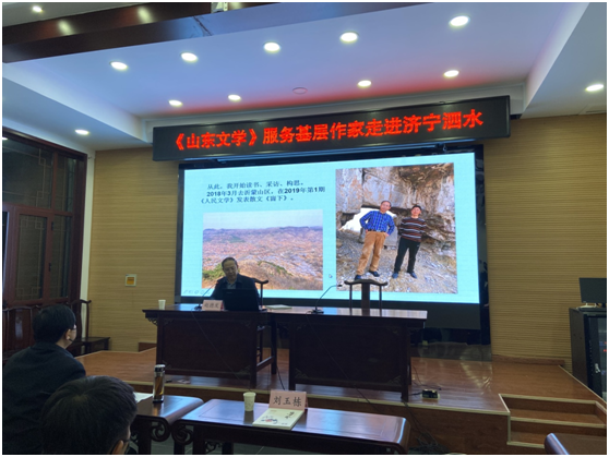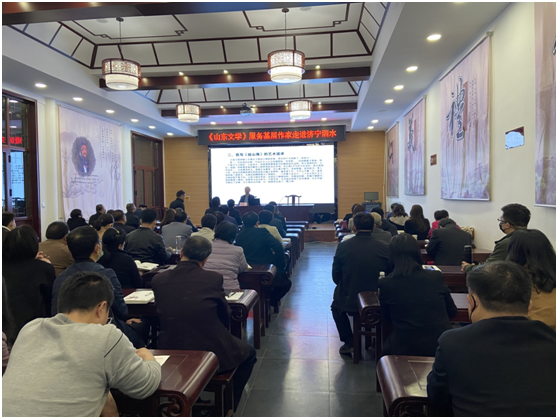 為貫徹落實(shí)山東省委宣傳部、山東省作協(xié)黨組“加大為基層作者服務(wù)”的工作指示,進(jìn)一步做好文學(xué)普及和服務(wù)基層工作,4月9日,《山東文學(xué)》服務(wù)基層作家走進(jìn)濟(jì)寧市泗水縣,了解基層作家文學(xué)創(chuàng)作情況,給基層作者贈(zèng)送《山東文學(xué)》,并邀請(qǐng)著名作家趙德發(fā)為基層作者授課。山東省作協(xié)副主席、《山東文學(xué)》主編劉玉棟,中共泗水縣委常委、宣傳部長程國棟,泗水縣文聯(lián)主席張寧等出席此次活動(dòng)。