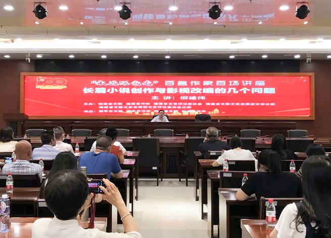 近日,由福建省文聯(lián)、福建省作協(xié)、福建省文藝評(píng)論家協(xié)會(huì)、福建省文聯(lián)文藝志愿團(tuán)文學(xué)分團(tuán)、福建省文聯(lián)文藝志愿團(tuán)文藝評(píng)論家協(xié)會(huì)分團(tuán)主辦的“永遠(yuǎn)跟黨走”百名作家百場(chǎng)講座活動(dòng)在松溪縣舉辦,此次活動(dòng)邀請(qǐng)了八一電影制片廠原廠長,茅盾文學(xué)獎(jiǎng)獲得者柳建偉前來授課,福州大學(xué)人文學(xué)院教授施曉宇主持講座活動(dòng),來自松溪縣的文學(xué)愛好者和中小學(xué)部分語文教師聆聽了講座。