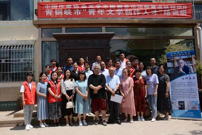 中國(guó)作家協(xié)會(huì)文學(xué)志愿服務(wù)示范性重點(diǎn)扶持項(xiàng)目——青銅峽市“青年文學(xué)創(chuàng)作人才”培訓(xùn)班同期舉辦,由作家之家負(fù)責(zé)人魯興華主持。寧夏作家協(xié)會(huì)副秘書長(zhǎng)張濤致辭。來(lái)自銀川、靈武、青銅峽、吳忠的青年文學(xué)愛(ài)好者,線下線上約計(jì)300人參加培訓(xùn)。