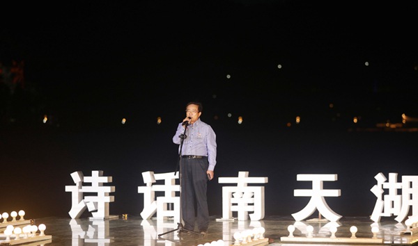 詩(shī)伴歌,云映湖,7月10日晚,首屆“詩(shī)話(huà)南天湖”文化朗誦活動(dòng)在豐都縣南天湖畔舉行。重慶詩(shī)詞學(xué)會(huì)的近二十位文學(xué)志愿者參與活動(dòng)。